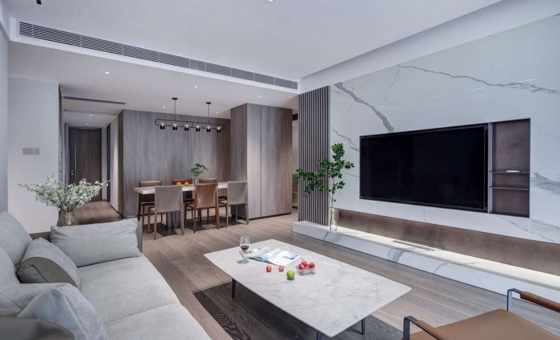 設計師獨出心裁,將大理石桌面嵌入其內(nèi)