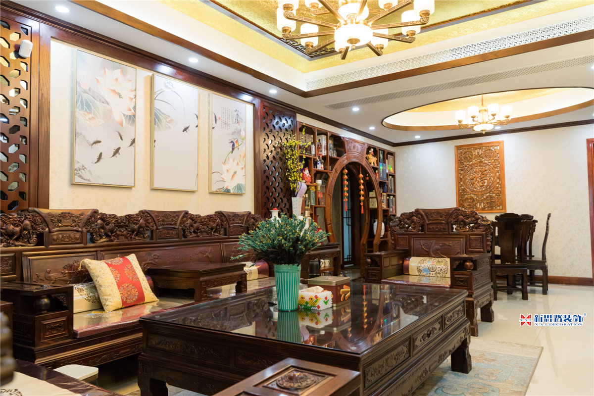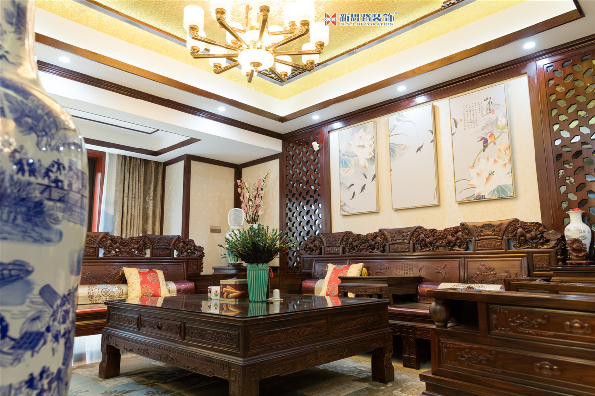 傳統(tǒng)中式風格家具以明清為基調,追求雕梁畫棟,木質材料單一,顏色多以黃花梨木和紫檀色為主。搭配中式燈具、古香古色字畫、各樣瓷器古玩,雖是美麗,卻也容易呆板。新中式家具搭配種類可謂琳瑯滿目,像高凳、窗欞、圈椅等與玻璃、布藝、金屬等現代元素相得益彰,可以演變出無數的產物