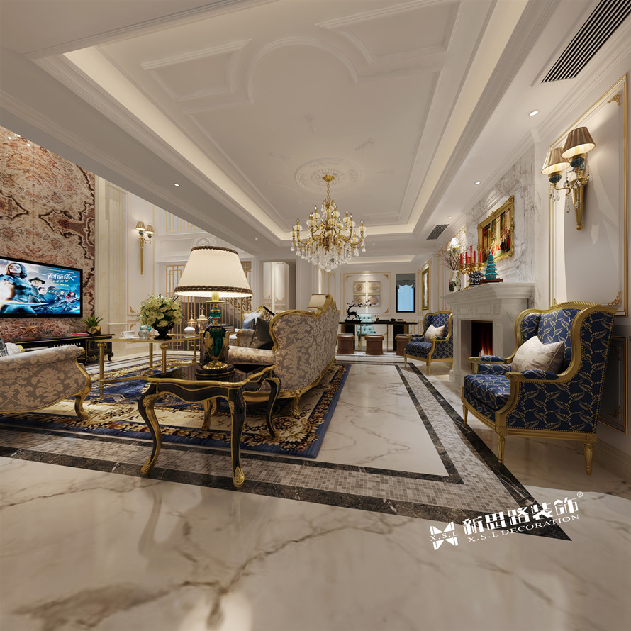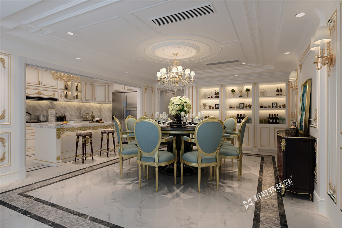 ● 戶型面積:350㎡ ● 設(shè)計(jì)風(fēng)格:法式輕奢 ● 整體費(fèi)用:130萬(wàn) 效果圖欣賞