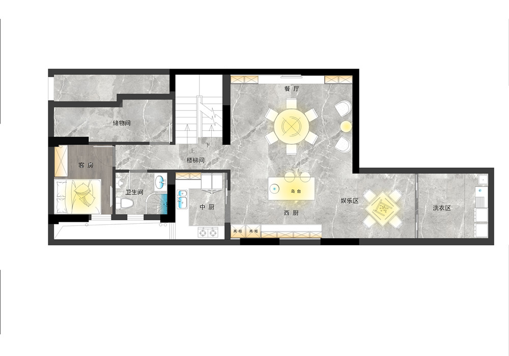 此設(shè)計(jì)為星麓原洋房底躍,面積330平方,常駐5口人家,負(fù)一樓層高為5860毫米,可以做現(xiàn)澆設(shè)計(jì)成兩層,負(fù)二樓設(shè)計(jì)為影視廳,健身區(qū),把廚房改造負(fù)一樓,使空間合理利用,有一個(gè)客房考慮在負(fù)一樓,不常住,吃飯娛樂,一樓設(shè)計(jì)為會(huì)客廳,茶區(qū),父母房,父母年齡大了,盡量少走樓梯,二樓就是主臥,女兒房,還有次臥。