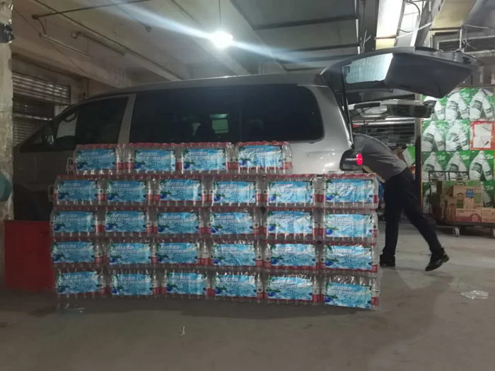 在前往一線工地送水前,我們做了周密且詳盡的計劃,先行采購大批飲用礦泉水。負責(zé)采購工作的工程部經(jīng)理與質(zhì)檢早早前去批發(fā)市場,挑選了品質(zhì)較普通飲水純凈水更高的礦泉水,規(guī)劃好送去各個工地的飲用水?dāng)?shù)量,采購?fù)瓿珊笳溲b車,準備前去工地。