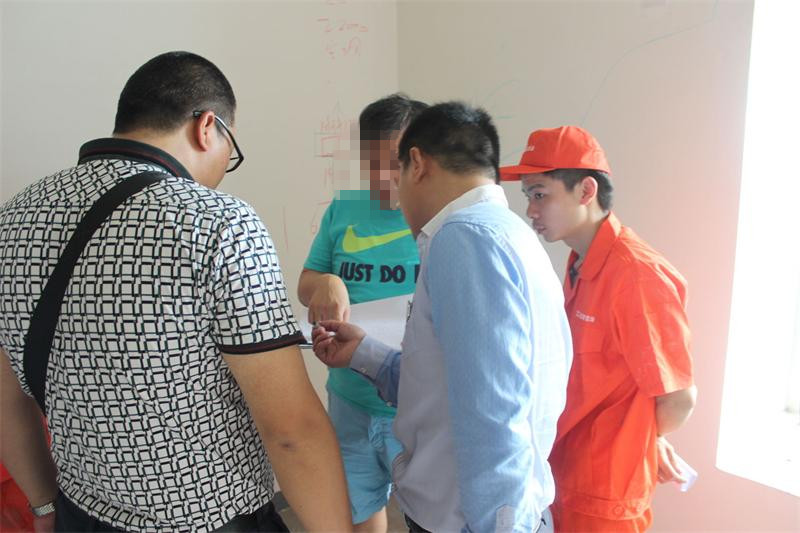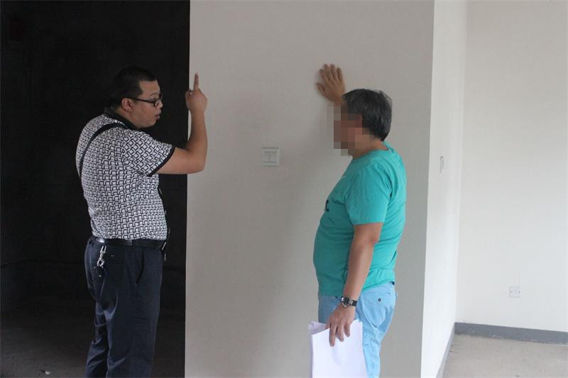 工程質(zhì)檢正在認(rèn)真檢查墻體是否存在空鼓情況。出現(xiàn)空鼓問(wèn)題的,質(zhì)檢會(huì)立即向物管反應(yīng),督促物管及時(shí)解決問(wèn)題。