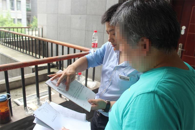 工程質(zhì)檢正在認(rèn)真填寫(xiě)客戶服務(wù)手冊(cè),以確認(rèn)本次進(jìn)場(chǎng)交底符合公司工程施工管理的相關(guān)規(guī)定。