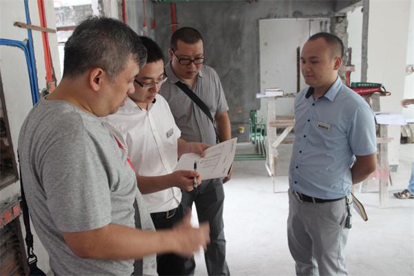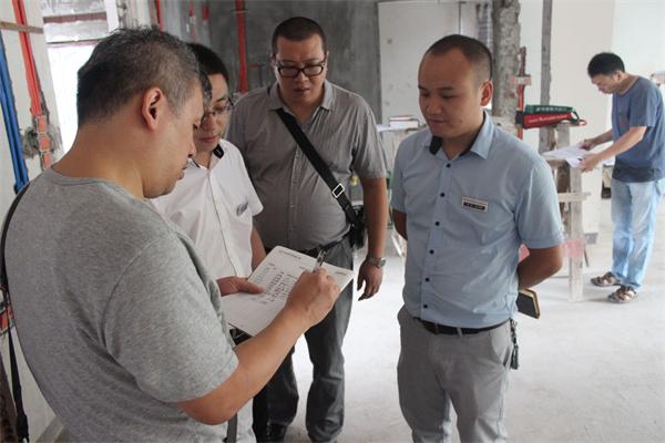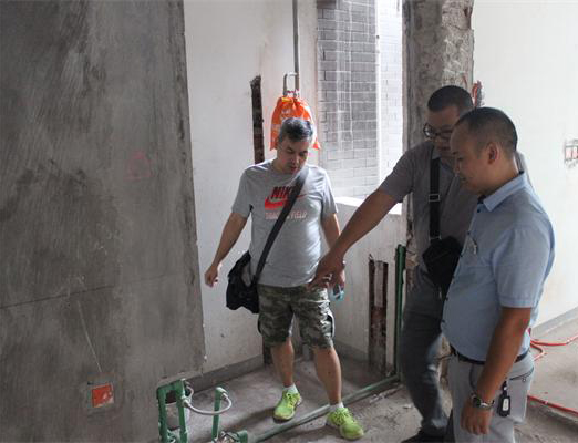 業(yè)主、設計師、項目經(jīng)理三方商討廚房水管改造方案