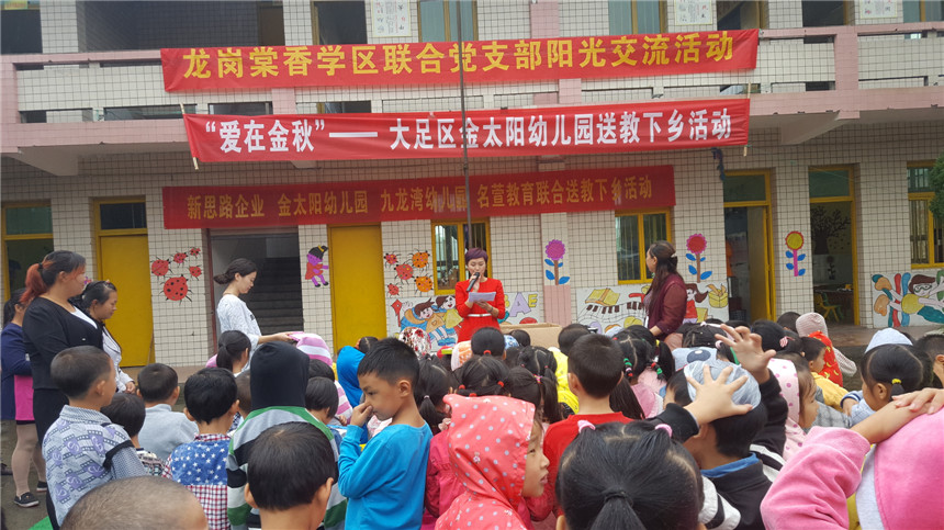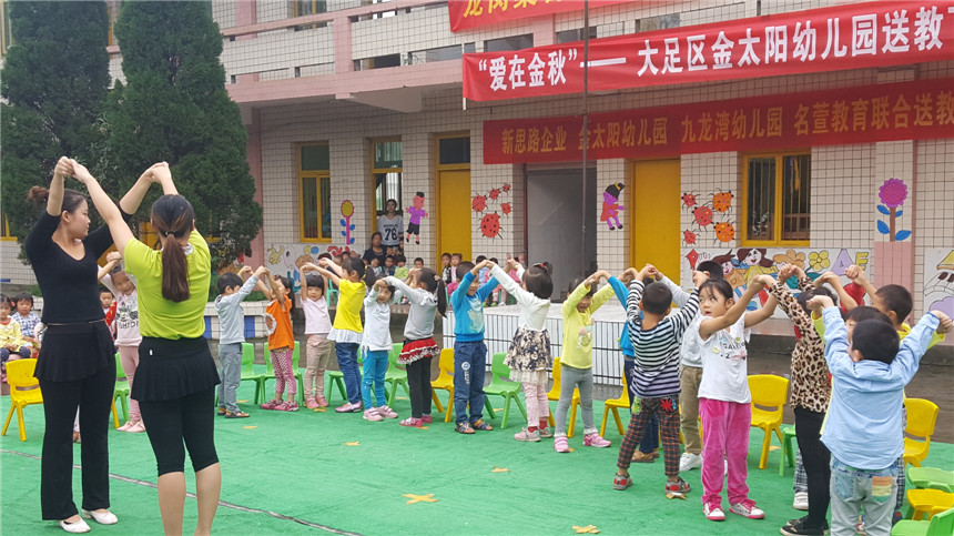 為了推進城鄉(xiāng)幼教事業(yè)的均衡發(fā)展,充分發(fā)揮優(yōu)質(zhì)民辦幼兒園的引領、示范、輻射作用,本著“幫扶共進、共同提高”的指導原則,共享優(yōu)質(zhì)教育資源,引領教師專業(yè)成長,全面提高學前教育保教質(zhì)量。新思路企業(yè)決定與金太陽幼兒園共同開展“送教下鄉(xiāng)捐贈”活動。