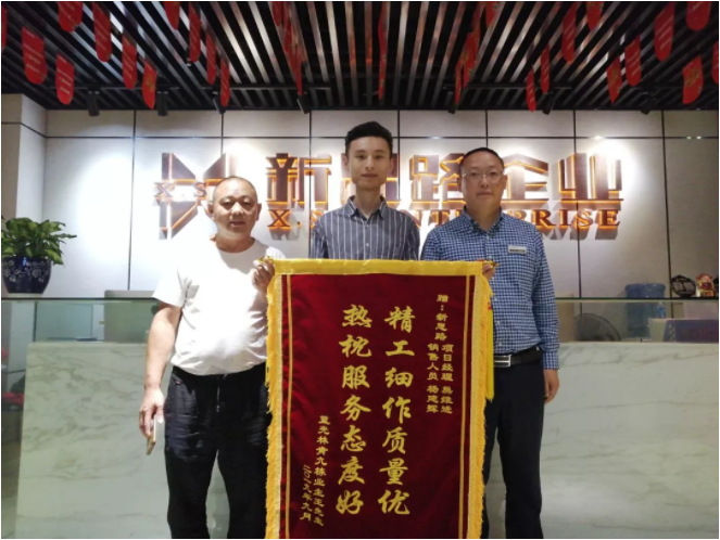 9月21日,來(lái)自藍(lán)光林肯公園的業(yè)主王先生在休息日,專程前來(lái)新思路裝飾總部,將一面寫(xiě)著“精工細(xì)作質(zhì)量?jī)?yōu),熱忱服務(wù)態(tài)度好”的錦旗贈(zèng)送給項(xiàng)目經(jīng)理熊維進(jìn)與銷售代表?xiàng)罱ㄝx,以感謝新思路裝飾公司精湛的施工技藝與熱情周到的服務(wù)。