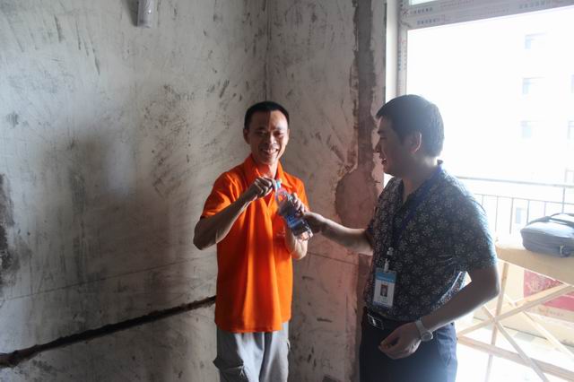 公司領(lǐng)導(dǎo)的關(guān)懷及送清涼活動,送到了員工的心坎上,暖在了員工的心田里。“公司領(lǐng)導(dǎo)冒著高溫給我們送來清涼解暑的礦泉水,就是對我們最真摯的關(guān)心??!”,“感謝公司對我們的關(guān)懷和慰問,我們再苦再累,心也是甜的,精神更好了,干勁也更足了!”……工人師傅們用最樸實真摯的話語表達(dá)著對公司的感謝之情。而正好碰到公司送水的一些業(yè)主,也對公司領(lǐng)導(dǎo)冒著高溫給一線工人送水的行為給予了高度贊揚。金源御府8棟27-3的李老師就表揚說:“公司領(lǐng)導(dǎo)頂著烈日,親自給一線工人送水,新思路裝飾這點做的很好很到位,衷心祝愿新思路裝飾的明天更加美好”。而麓山別苑20棟2單元1—2的陳老師也稱贊道:“這么熱的天,新思路的領(lǐng)導(dǎo)們能到工地慰問工人,說明新思路裝飾是一家非常有管理,極具人性化的企業(yè),相信新思路今后的發(fā)展會越來越好,道路會越走越寬!”