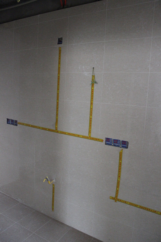 質(zhì)檢正在認(rèn)真檢查墻面貼磚情況