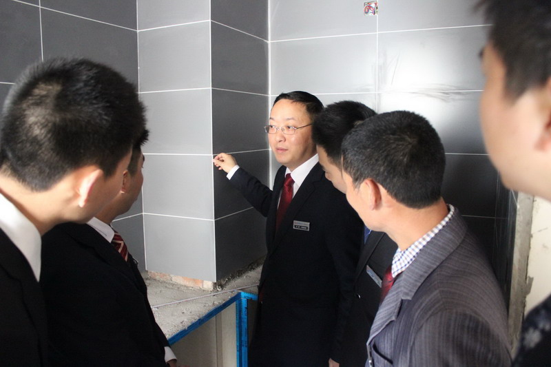 文經(jīng)理正在向大家認(rèn)真講解貼磚工藝細(xì)節(jié)