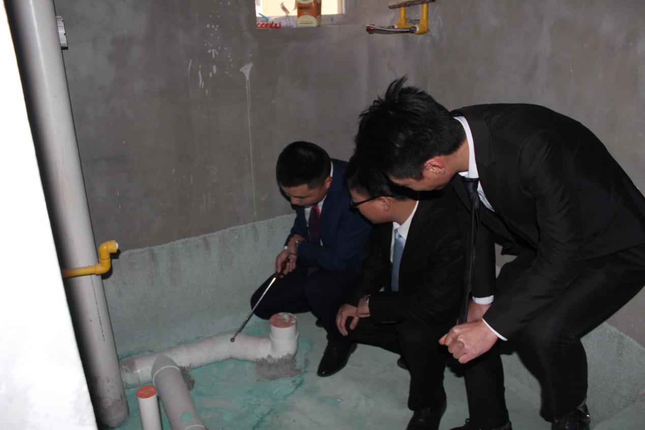 (南坪店楊店長(zhǎng)正在檢查防水、給排水的施工流程及工藝)