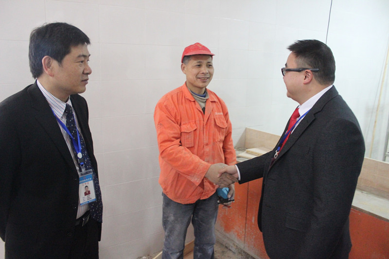 在美的集團員工食堂工地,李總一行認真察看了解了工地的施工進度、施工細節(jié)、工藝工序等情況,同時還詳細了解了工人生活和工地安全監(jiān)管情況。針對檢查中發(fā)現(xiàn)的問題,李總要求現(xiàn)場負責人要切實負起責任,保證施工質(zhì)量,決不允許留下安全隱患,同時做好工人工資發(fā)放的各項準備,讓工人們開開心心過好年。