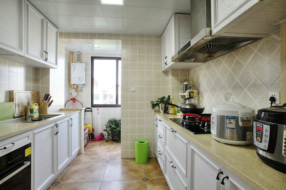 廚房的燈要明亮,這樣眼睛就能不費力的看清楚要切的是蒜苗還是蔥;燈泡,不要裝黃燈,不然,蔬果肉類的顏色易失真。記得廚房是打仗的地方,不是搞氣氛的地方?,F(xiàn)在吊頂主燈有幾種做法,包括嵌燈,日光燈或流明吊頂。流明吊頂是利用亞克力板或白膜玻璃嵌入頂棚中,好處是可讓光源更均勻的灑下,但缺點是造價比較貴但廚房要亮,不是靠吊頂燈,而是要加強重點照明,例如在切菜的臺面上方以及燃氣灶上方,皆可再加裝一盞燈。
