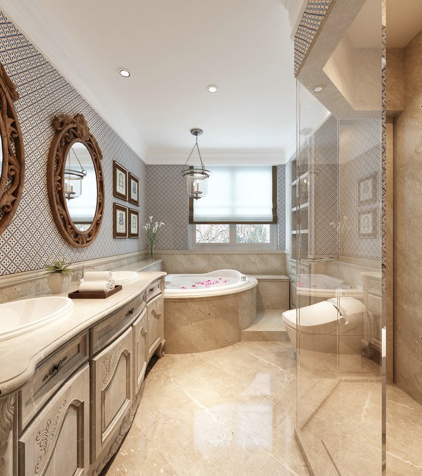 衛(wèi)生間用什么瓷磚好,簡(jiǎn)單的來說,衛(wèi)生間通常濕度比較大,對(duì)瓷磚的要求就是能防水、防滑性、耐磨性。衛(wèi)生間地磚一般選用通體磚,防滑耐磨性較好;衛(wèi)生間墻磚通常選用釉面磚,釉面磚經(jīng)過釉面處理色彩圖案豐富,防污能力強(qiáng)?!?/span>
