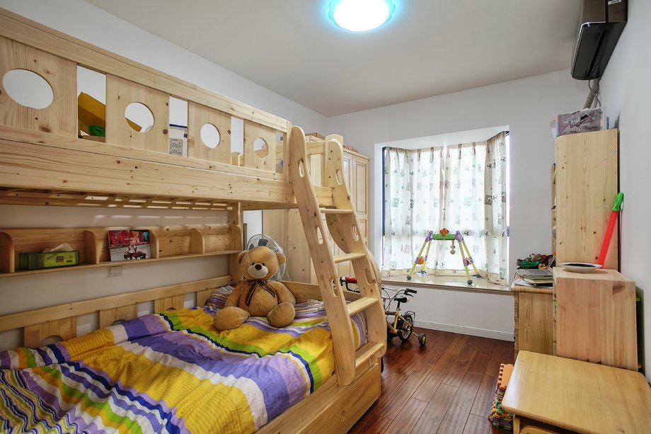 子女房與主臥最大的區(qū)別就在于設計上要保持相當程度的靈活性。子女房只要在區(qū)域上為他們做一個大體的界定,分出大致的休息區(qū)、閱讀區(qū)及衣物儲藏區(qū)就足夠了。在室內色彩上吸引孩子是設計子女房的要點。兒童房間容易弄臟,裝飾時應采用可以清洗及更換的材料,最適合裝飾兒童房間的材料是防水漆和塑料板,而高級壁紙及薄木板等不宜使用。